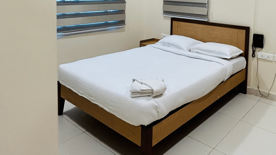 The Studio Suite at A M Suites in Secunderabad spans 600 sq. ft. and can comfortably accommodate up to 4 guests, comprising 2 adults and 2 children. The suite comprises a single bedroom, a spacious living room and a well-equipped kitchen.